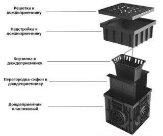 Dans les jardins familiaux, les structures en fonte et en béton ne sont pas souvent utilisées. Ils sont plus chers, en raison de leur poids élevé, ils nécessitent une installation professionnelle à l'aide d'équipements de levage. Pour les besoins privés, il est plus rationnel d'utiliser une version en plastique de l'entrée des eaux pluviales. De telles structures sont assez durables, non sujettes à la corrosion, vous pouvez les installer vous-même.