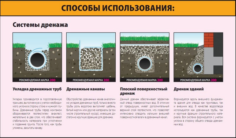 Dans tous les cas, l'aménagement est réalisé à distance des bâtiments. Toutes ces structures drainent rapidement la zone. Si le trou est percé à une faible profondeur, il doit être élargi. Au fond, de la pierre concassée, de l'argile expansée ou des copeaux de béton doivent être placés. Ils renforcent le drainage tout en agissant comme un filtre.