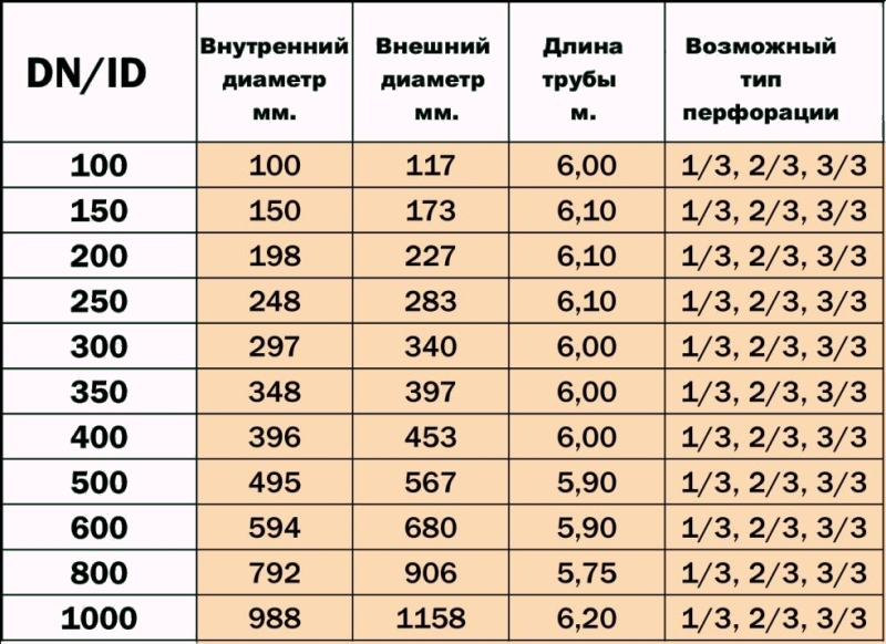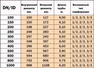 Les tuyaux dans un filtre géotextile sont vendus en mètres linéaires. Un rouleau de 40 à 50 m L'acheteur a la possibilité d'acheter la longueur du manchon nécessaire à l'installation du système sans utiliser de connexions supplémentaires. Il y a des drains par la taille de la section interne: