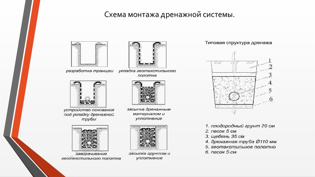 Il est plus efficace d'utiliser des tuyaux perforés en polymères dans les géotextiles pour les systèmes de drainage. Le principe de fonctionnement d'un système de drainage perforé est le suivant :