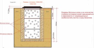 Les dispositifs d'absorption sont placés sur un tampon filtrant lâche. Il doit être fait d'au moins un demi-mètre de haut à partir de sable, de gravier et de pierre concassée. La disposition du coussin sera nécessaire même lorsque l'anneau inférieur en béton armé est équipé d'un fond filtrant intégré.