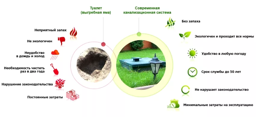 - Commodité d'utiliser le système d'égouts. Tous les appareils de plomberie et appareils de nettoyage peuvent être installés dans la maison.
