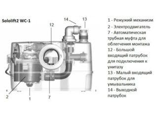 Les pompes Sololift sont logées dans un boîtier en plastique robuste, équipé d'un broyeur en acier allié. Les unités disposent en outre d'une vanne de ventilation pour étouffer les odeurs d'égout. Ils fonctionnent presque silencieusement - le son est éteint par le boîtier, l'entraînement électrique de l'équipement de cette série n'est pas le plus puissant.