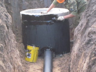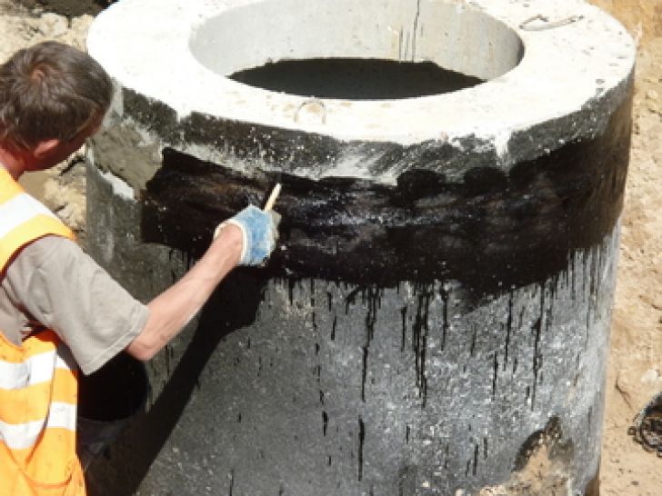Des mastics bitume-polymère peuvent être utilisés pour imperméabiliser les plans extérieurs des puits. Mais le plus souvent, ils utilisent une option combinée : ils utilisent du mastic et une protection en rouleau ou en membrane. Comme ces derniers, des matériaux de toiture ou des membranes spéciales sont posés sur les anneaux, qui sont à base de fibre de verre, traités des deux côtés avec un mélange de bitume et de polymère. Le matériau de la membrane est plusieurs fois meilleur que le matériau de toiture.