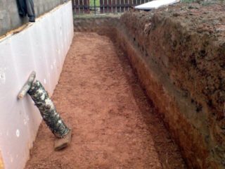 Dans certaines maisons, la situation évolue de telle sorte que le sous-sol se situe en dessous du niveau auquel la nappe phréatique se dépose. Ici, il devient nécessaire de créer une couche d'étanchéité qui ne présente aucune rupture et qui soit capable de résister à la forte pression des eaux souterraines. Lors de travaux d'imperméabilisation du sous-sol, la première étape importante que le propriétaire de l'immeuble doit entreprendre est de prendre les mesures nécessaires visant à abaisser le niveau de la nappe phréatique. Pour ce faire, des travaux de terrassement sont d'abord effectués, après quoi des tuyaux perforés sont placés dans des tranchées sur tout le périmètre de la maison. Avec leur aide, l'eau venant à la maison sera détournée vers des endroits bas du site. Par exemple, des ravins naturels ou des caniveaux aménagés.