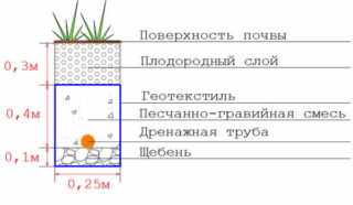- Section drains. Cela dépend directement du type de sol drainé. Plus il est lâche, plus le diamètre du contour doit être grand.