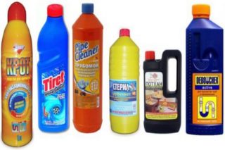 Disponible sous forme de gel ou de granulés. Il fonctionne en 20 minutes. Après utilisation, les tuyaux doivent être rincés avec un jet d'eau chaude. Le produit est très caustique, vous devez donc le travailler avec des gants en caoutchouc.