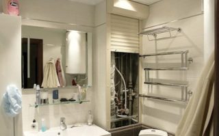 Si vous devez masquer une colonne montante publique avec des conduites d'eau verticales, il est préférable d'utiliser un volet roulant spécial plomberie. La méthode est bonne et facile à utiliser. Le maître peut toujours ouvrir l'accès aux tuyaux sur toute leur longueur verticale.