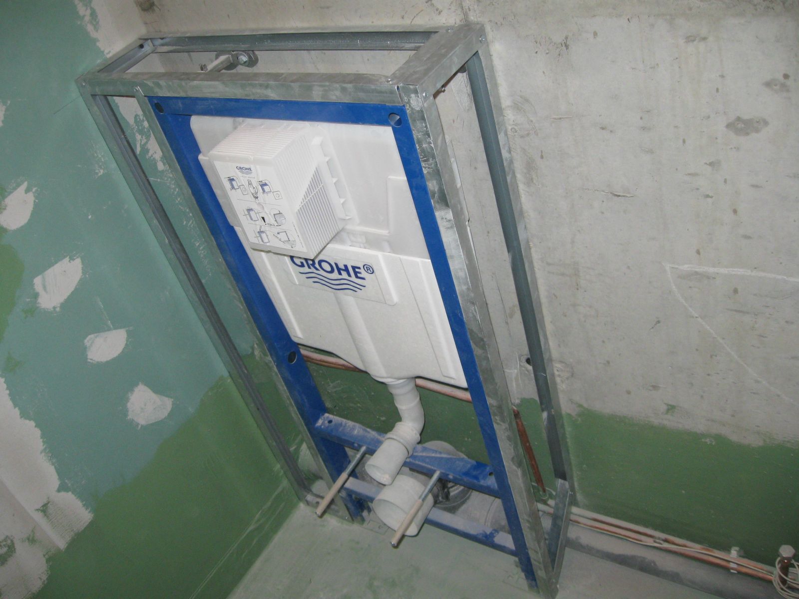 Des structures fiables deviennent une barrière aux odeurs d'égout. Le cadre est composé de poutres en bois ou d'angles en acier galvanisé. Les pièces en bois sont prétraitées avec des antiseptiques. Les services publics sont recouverts de plaques de plâtre, de feuilles de PVC et de MDF.