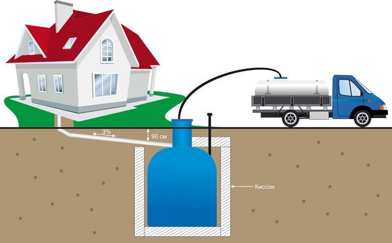 Dans les zones où les écoulements d'eau sont proches de la surface, il est plus facile d'installer un dispositif de stockage en plastique scellé avec une trappe pour pomper les eaux usées de vos propres mains. Vous n'aurez pas à consacrer beaucoup de temps et d'argent à l'installation, mais la conception nécessitera un pompage régulier.