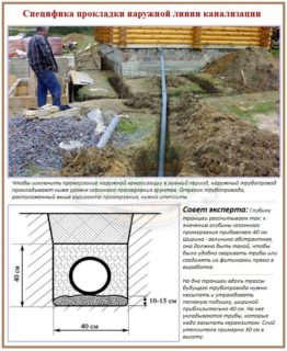 - Assainissement externe : canalisation et autres éléments de communication à l'extérieur des bâtiments, grâce auxquels les eaux usées sont envoyées vers une station d'épuration locale. En règle générale, le collecteur externe est installé sous terre. Le diamètre des tuyaux diffère en fonction du volume d'eau sale transportée.