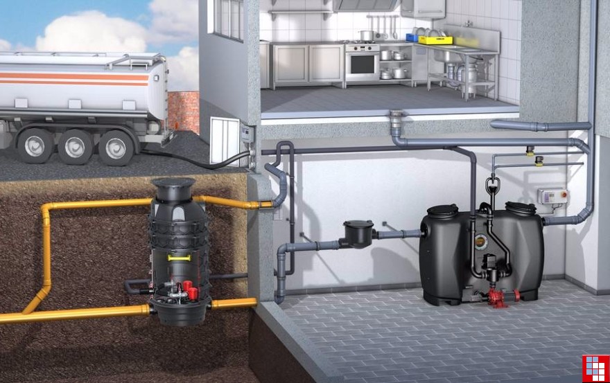 Les tuyaux sont équipés de clapets anti-retour pour éviter le retour des odeurs et des liquides dans la maison. Les déchets sont conservés dans le panier de réception, d'où ils sont retirés lors de l'entretien et du nettoyage de routine.