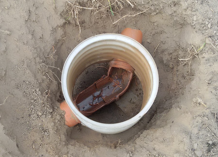 - lors du raccordement des tuyaux d'entrée et de sortie, les joints sont également recouverts de bitume chaud, si le plastique peut être fondu ou soudé, c'est un moyen plus facile de sceller la structure.