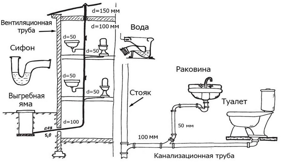 - Sélectionnez les tuyaux pour les conduites intérieures et extérieures de la taille appropriée afin qu'une pression excessive de l'égout ne conduise pas à une rupture de canalisation.