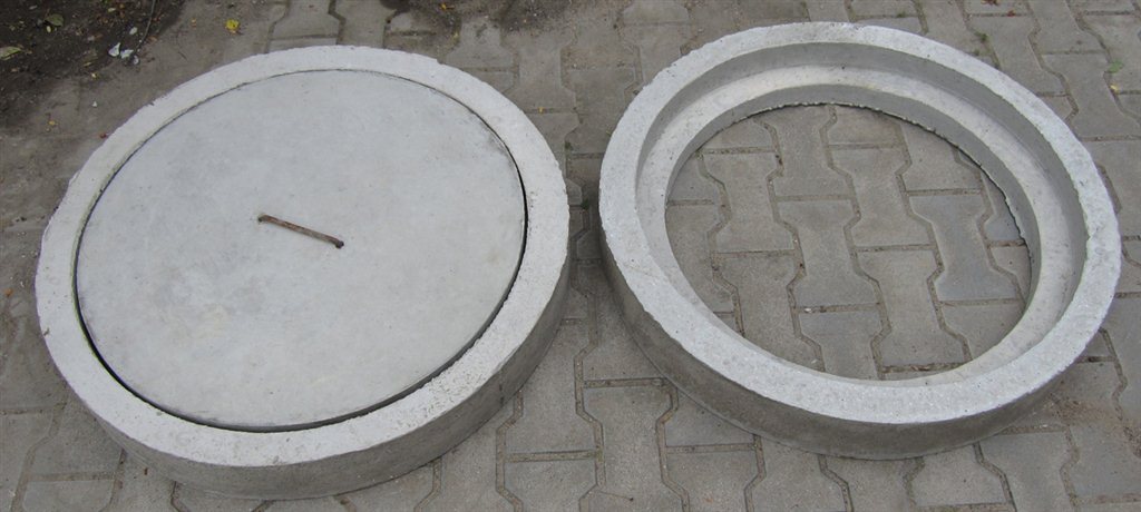 Pour la fabrication de trappes en béton et en béton armé, du ciment de haute qualité est utilisé - il résiste à l'humidité et aux contraintes mécaniques. A utiliser en combinaison avec des anneaux béton : après pose de la dalle supérieure avec trou de trappe. Pour plus de commodité, des poignées en métal sont coulées dans le béton.