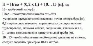- La hauteur de la colonne d'eau pour surmonter les sections verticales et horizontales de la ligne.