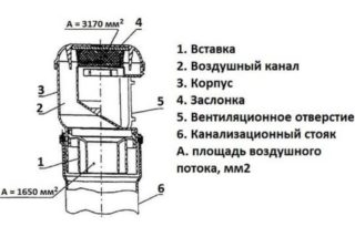 - Diamètre (taille). Les options acceptables sont 50 et 110 mm. La section de l'aérateur doit correspondre au diamètre du tuyau sur lequel il sera installé.