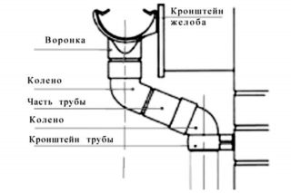 Le coude du tuyau de descente est une pièce pliée à l'angle désiré. La dérivation est utilisée dans presque toutes les gouttières afin de combiner avec succès un système de drainage et un entonnoir qui recueille les sédiments, contourne les obstacles architecturaux et protège la fondation.