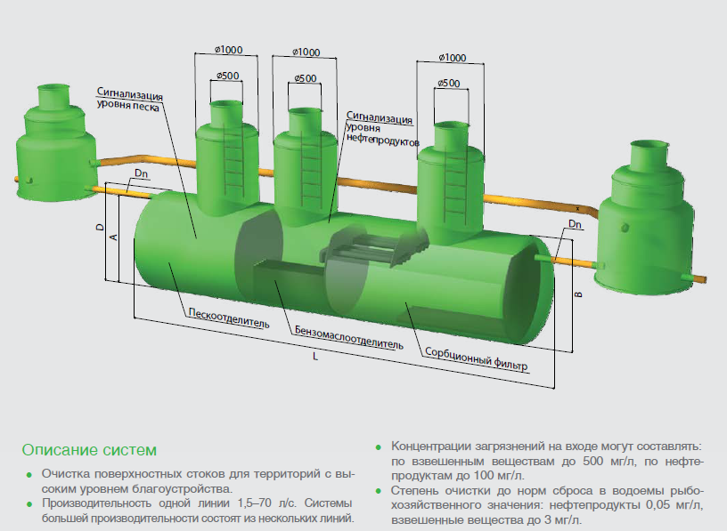 L'eau de fonte et les précipitations absorbent les composés chimiques et divers déchets solides de la surface de la terre. Il n'est pas permis de déverser dans les sources d'eau naturelles la pollution provenant des entreprises industrielles et des autoroutes s'accumulant dans les égouts pluviaux des grandes villes. Les usines de traitement des eaux usées de surface libèrent les ressources contaminées du sable, des débris et des produits pétroliers. Les sources d'abreuvement doivent être protégées des rejets de déchets toxiques. Rendre les eaux usées sûres pour l'homme et l'environnement et les préparer à être réutilisées avec une attitude rationnelle vis-à-vis des ressources naturelles est la tâche des installations locales de traitement des eaux pluviales.