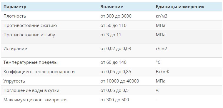 - Haute résistance. En raison de l'absence d'impuretés minérales, les impacts même ponctuels sont moins terribles pour les plateaux que pour les produits en béton.