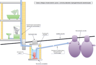 Souvent, pour le dispositif d'un système d'égouts sous pression dans une maison privée, un mini SPS (pompe spéciale) est installé au sous-sol des chalets immédiatement derrière les toilettes. Ainsi, les drains sous pression atteignent la section gravitaire du réseau d'égouts individuel. Les petites stations sont appelées stations internes. Les stations de pompage des eaux usées extérieures sont montées à l'extérieur de la maison et peuvent servir plusieurs objets à la fois.