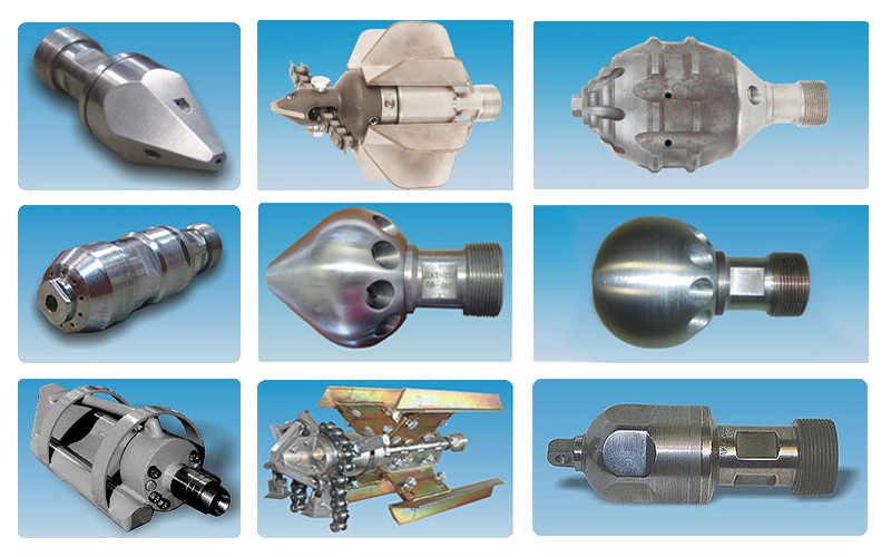 Pour obtenir une qualité de rinçage, le tuyau est complété par divers accessoires (buses). Ils renforcent l'effet du jet d'eau en brisant les couches denses ou glissantes de blocage. Lors du choix d'une buse, vous devez reconnaître le type de blocage afin que le nettoyage soit le plus efficace possible. Pour cela, un équipement de téléinspection est utilisé.