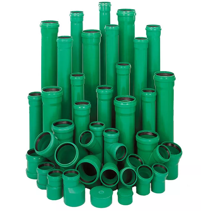 Les tuyaux noirs sont principalement constitués de gros diamètres (250-850 mm, ils peuvent être plus gros), ils sont utilisés pour la construction de systèmes d'égouts urbains lorsque de gros volumes d'eaux usées doivent être évacués. La valeur maximale de la température du liquide qui passe ne doit pas dépasser 60 ° C.