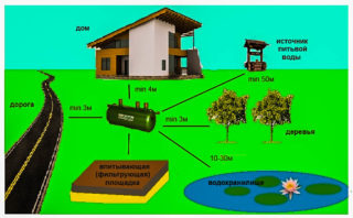 Si l'eau du sol est profonde et que la connexion entre les couches de terre et l'aquifère n'est pas tracée, la fosse septique est située à une distance de 20 m de la source. En présence de sols sableux et limoneux sableux, qui ont une grande capacité de filtration, l'écart passe de 50 m à 80 m.