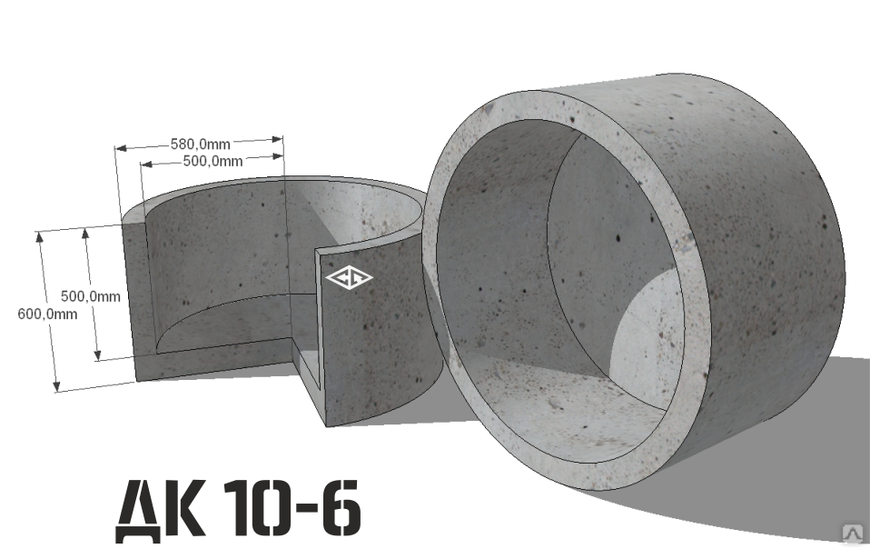 Par exemple, pour une bague de marque KS 10-9, où le diamètre est de 1 m, la hauteur est de 0,9 m :