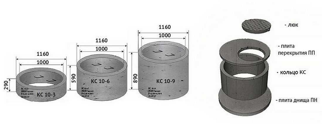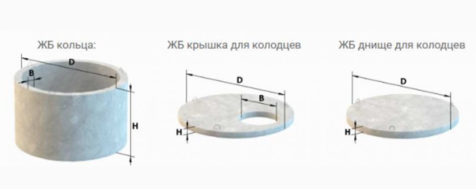 Les fabricants de béton préfabriqué proposent des éléments supplémentaires aux anneaux : fonds de puits et couvercles avec trous pour trappes et tuyaux de ventilation. Les deux éléments sont fabriqués conformément aux diamètres des anneaux en béton armé.