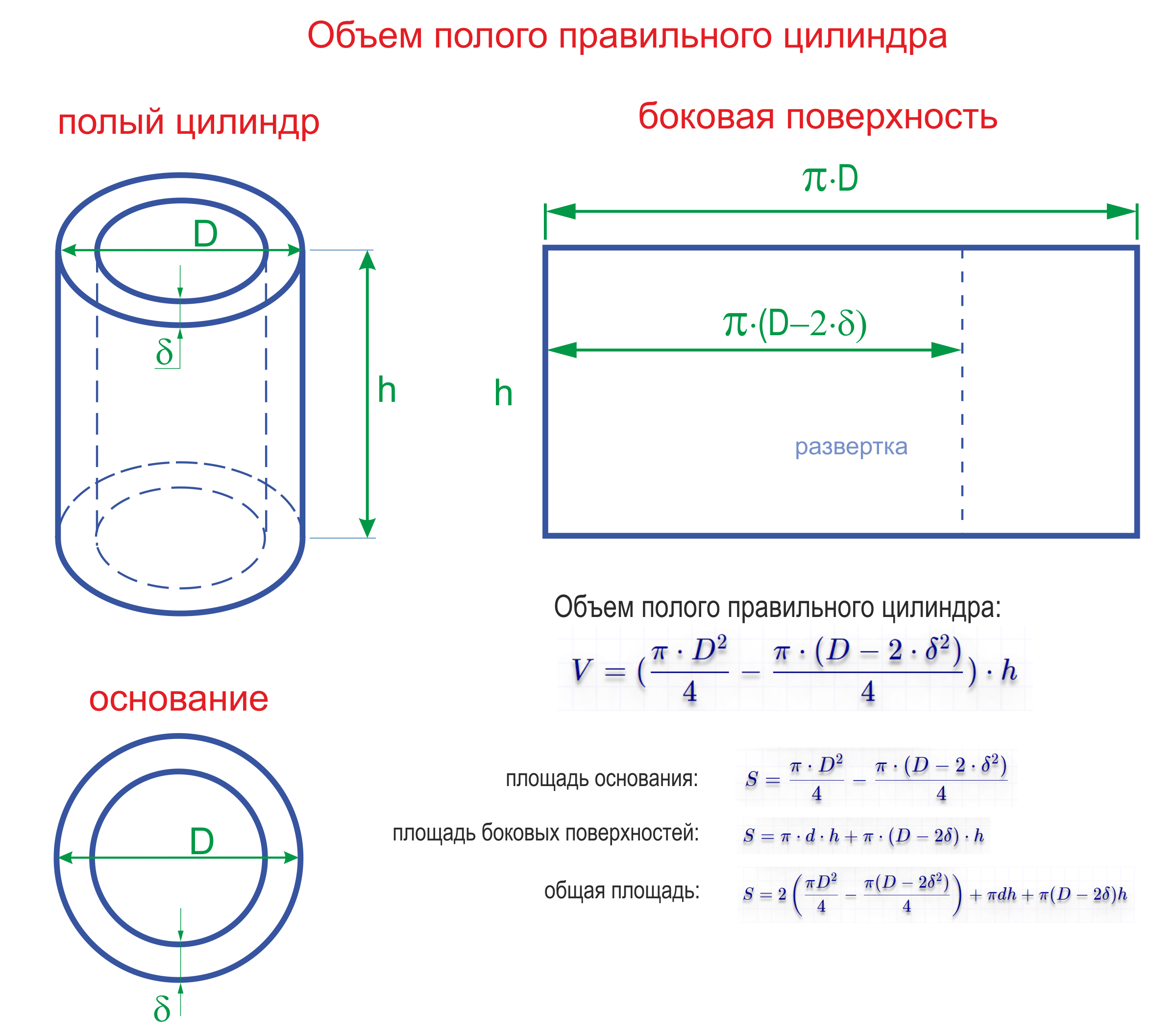 S = D² / 4 = 3,14D² / 4.