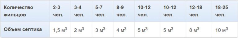 Les valeurs indiquées doivent être multipliées entre elles. L'indicateur final est le volume requis du puits d'égout. Par exemple, si la maison réside en permanence 3 personnes:
