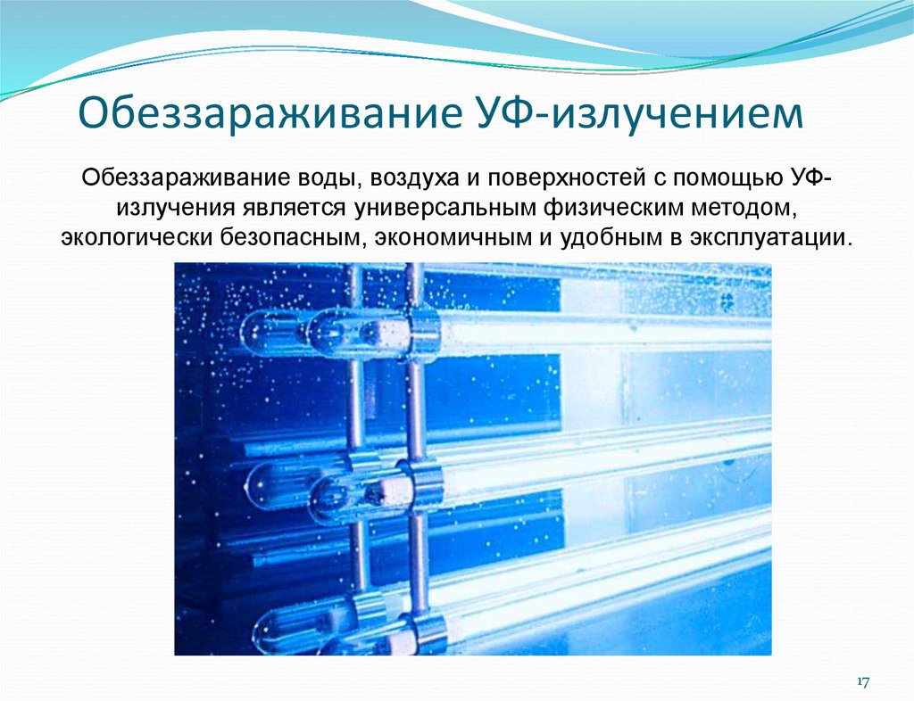 L'avantage de la méthode est que de nombreuses bactéries sont devenues résistantes au chlore et à d'autres produits chimiques, de sorte qu'elles ne se prêtent pas à son influence et continuent de se diviser activement. Il est impossible de s'adapter à la lumière ultraviolette, la méthode est donc plus fiable.
