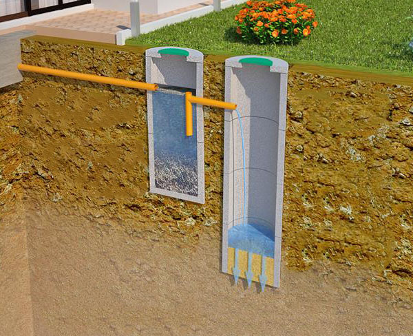 Les maisons privées qui ne sont pas raccordées au système d'égouts utilisent des fosses pour collecter les eaux usées. De temps en temps, des conteneurs sont remplis de déchets et d'eaux usées diverses. Les bactéries contenues dans les effluents absorbent partiellement les accumulations, tandis que la partie filtrée de la contamination passe dans la couche de sol sous-jacente. Les déchets non traités doivent être éliminés régulièrement.