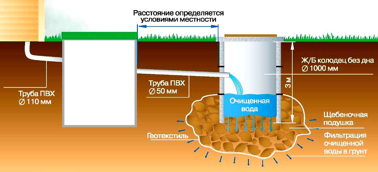 Pour économiser de l'argent sur les services d'un égout, il est logique d'améliorer le récepteur d'égout: construire une fosse septique à deux chambres sur le site. On l'appelle aussi fosse de débordement. Agit sur le principe suivant :