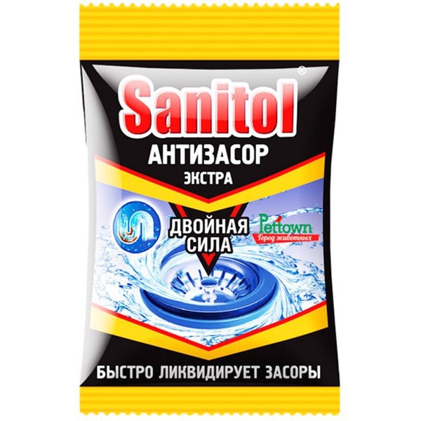 Versez le contenu d'un sac dans le trou de vidange et versez un verre d'eau tiède. Laisser agir 15 minutes, rincer le tuyau d'égout avec un grand volume d'eau. Si l'effet est insuffisant, répétez la procédure.