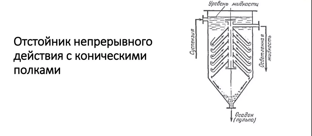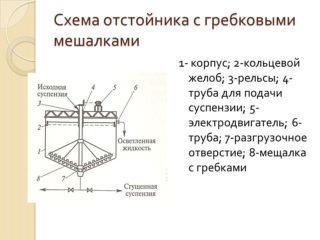 Dans les dispositifs de décantation du premier type, les agitateurs sont montés sur un arbre avec un seul entraînement. Pour éliminer les fuites, des presse-étoupes sont utilisés. Le processus de déchargement des boues, ainsi que la vidange du liquide clarifié, sont effectués séparément pour chaque décanteur.