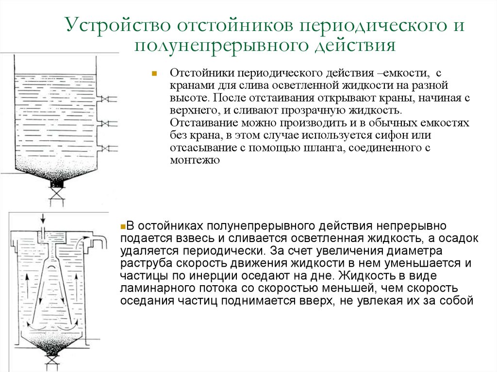 Ils sont utilisés dans la production industrielle. Selon leur conception, les bassins de décantation à action continue sont subdivisés en un, deux et plusieurs niveaux.L'utilisation d'appareils à deux et plusieurs niveaux est causée par le degré de pollution de l'effluent.