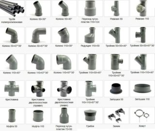Le prix des adaptateurs d'égout est bas: une réduction peut coûter de 20 à 200 roubles, une branche - de 100 à 350 roubles, un tee ou une croix - de 200 à 500 roubles, un couplage - de 100 à 250 roubles. Le coût moyen des révisions est de 500 roubles.
