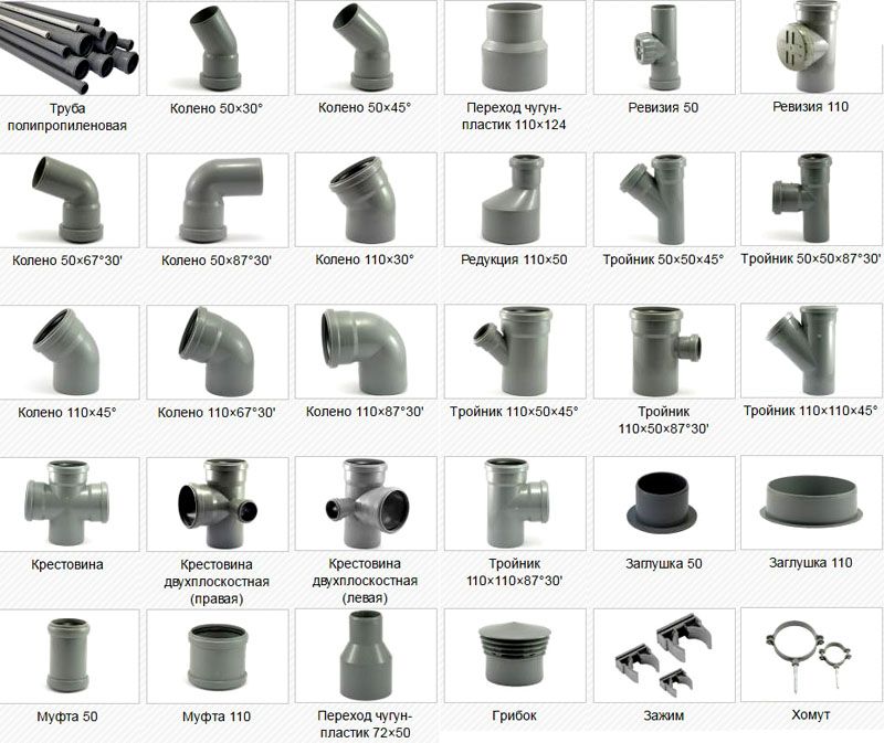 À la maison, les canalisations en plastique sont le plus souvent installées. Selon le matériau de fabrication des branches principales, les adaptateurs sont choisis parmi le polypropylène ou le PVC.