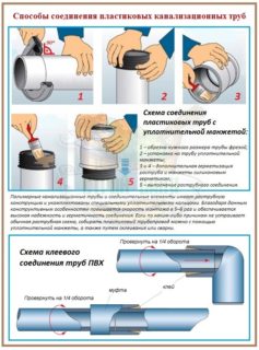 Dans les systèmes polymères, la connexion est réalisée par un joint torique interne. Structurellement, cela est déjà fourni par le fabricant. La pièce est poussée sur l'extrémité lisse de la section de tuyau, après quoi un adaptateur est mis en place par le haut. Cependant, cette méthode ne convient que pour le drainage intérieur par gravité. Les éléments externes des réseaux sous pression sont en outre scellés avec un adhésif spécial :