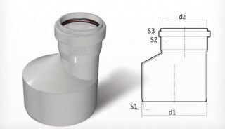 La plupart des types d'éléments de transition sont utilisés dans les systèmes d'égouts externes et internes. Ils, comme les tuyaux, diffèrent par l'ombre. Dehors, ils mettent des produits rouges, à l'intérieur - gris et blanc.