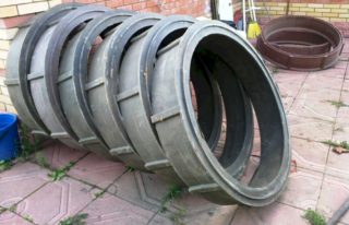 Un anneau en polyéthylène avec des dimensions (diamètre, épaisseur, hauteur) 950 * 8 * 1500 coûte 21 000 roubles, avec des dimensions 1900 * 8 * 3000, il coûtera 71 000 roubles. Les produits en polypropylène avec les mêmes paramètres sont vendus entre 25 000 et 83 000 roubles.