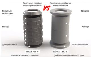 Auparavant, les puits étaient construits à partir d'anneaux ou de briques en béton armé, mais la structure du bâtiment n'offrait pas une étanchéité à cent pour cent. Cela a conduit à la destruction des parois de la structure et à la pénétration de l'eau du sol. Le matériau habituel a été remplacé par des anneaux en polymère durables, à l'aide desquels il a été possible de résoudre ce problème. L'installation des puits a été simplifiée en raison du faible poids des éléments.