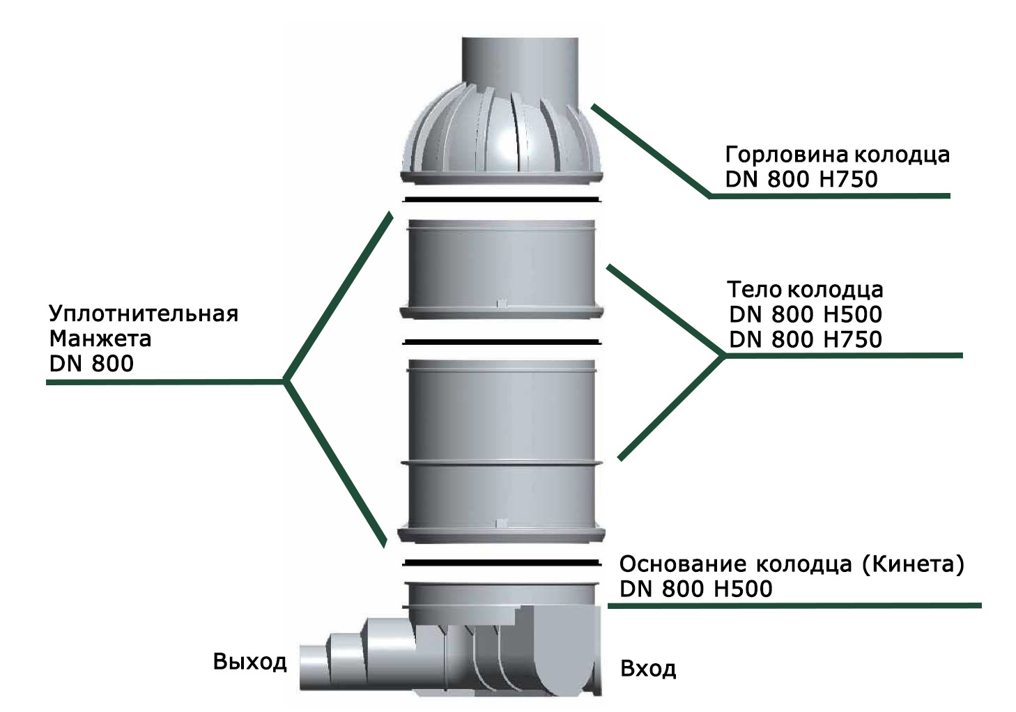 Pour l'ensemble complet, il y a des kinets (bases), des couvercles, des plateaux intégrés pour les connexions externes, des trappes et des cols en vente. Il existe des solutions toutes faites : puits et fosses septiques.
