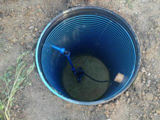 - avant d'installer le puits, un coussin en pierre concassée de 15 cm est coulé;