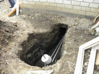 - Une tranchée est creusée jusqu'au bord inférieur de la fondation.