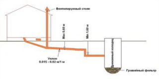 Les tuyaux sont posés au préalable dans un fossé creusé sur un coussin de sable et avec des matériaux de construction calorifuges. La pente doit être effectuée sur la base du calcul d'au moins 2 cm par mètre de communication.