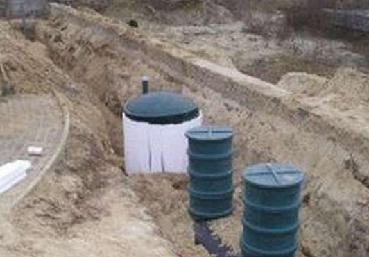 Au moins 30 mètres sont laissés entre les dispositifs d'évacuation des eaux usées et la source d'approvisionnement en eau afin que les drains ne polluent pas l'eau potable. Le site où l'approvisionnement en eau est installé est situé à 50 mètres ou plus de la fosse septique.