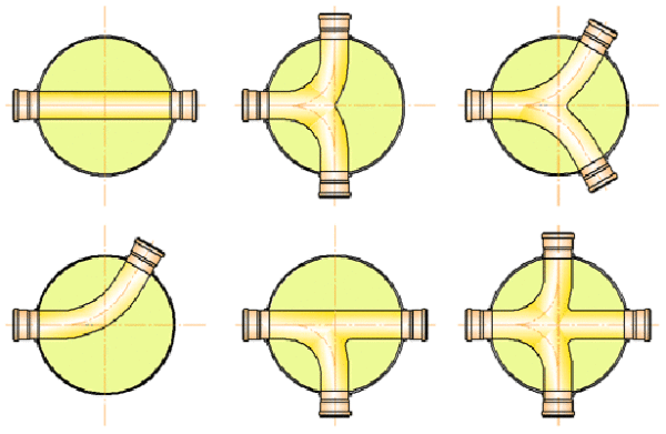 - Pivot. Ils permettent de contrôler les zones à travers lesquelles les fluides résiduaires changent de direction de mouvement, rendent les lieux de virages et de plis plus accessibles, où se forment souvent des blocages.